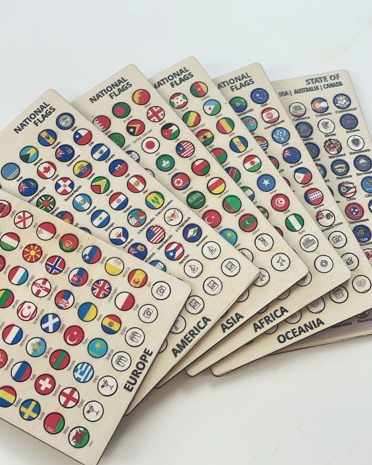 Zamień swoją drewnianą mapę świata w spersonalizowaną kronikę podróży! Dzięki zestawowi 420 flag państw, stanów i symboli podróżniczych nie tylko oznaczysz miejsca, które odwiedziłeś, ale także nadasz swojej mapie indywidualnego charakteru i głębi. Ten produkt to idealne uzupełnienie każdej mapy – zarówno jako element edukacyjny, jak i pamiątka z podróży.