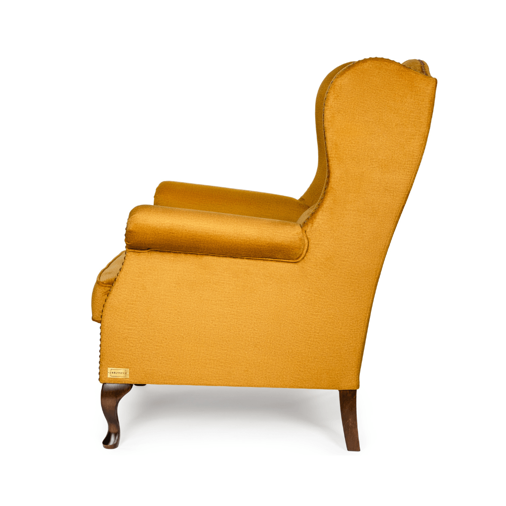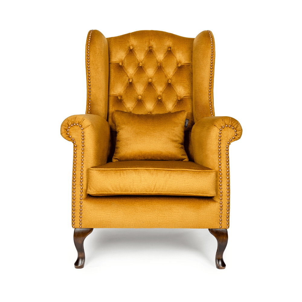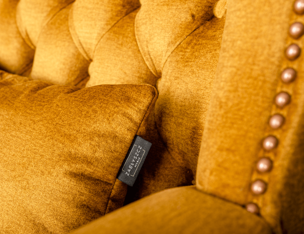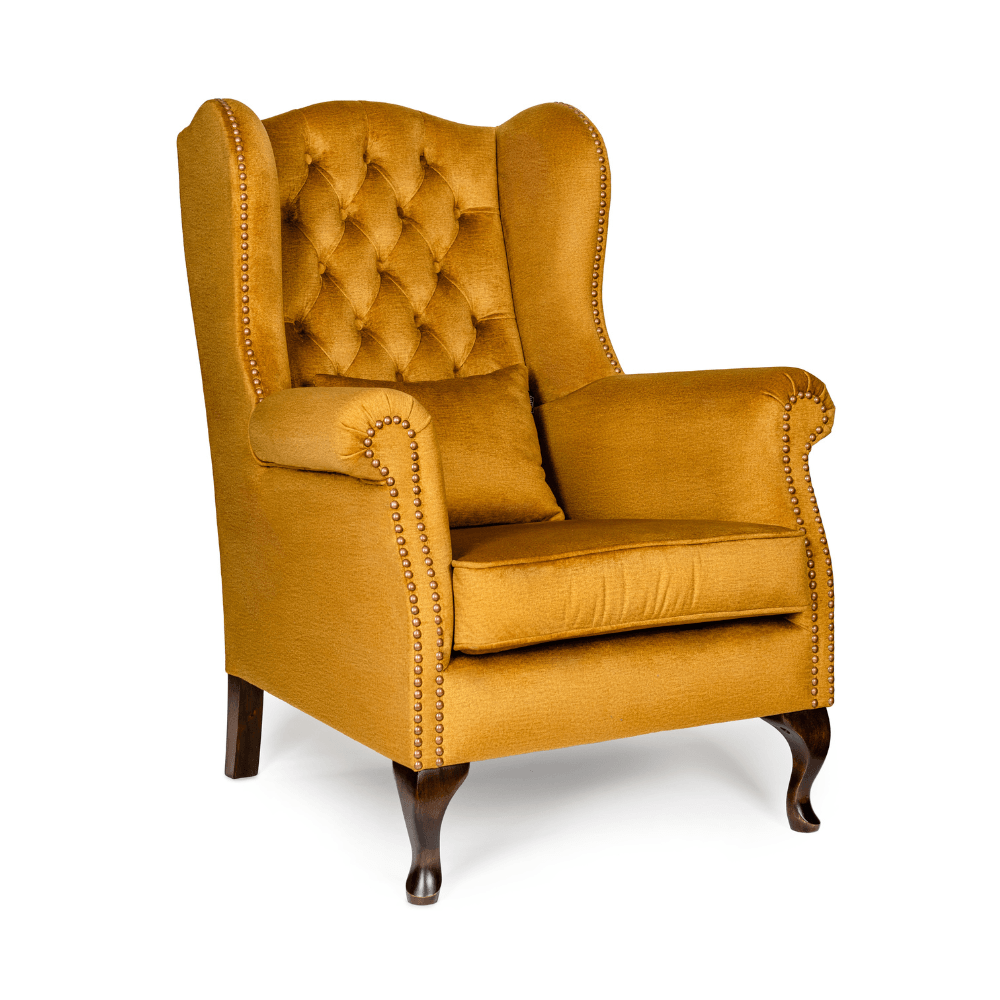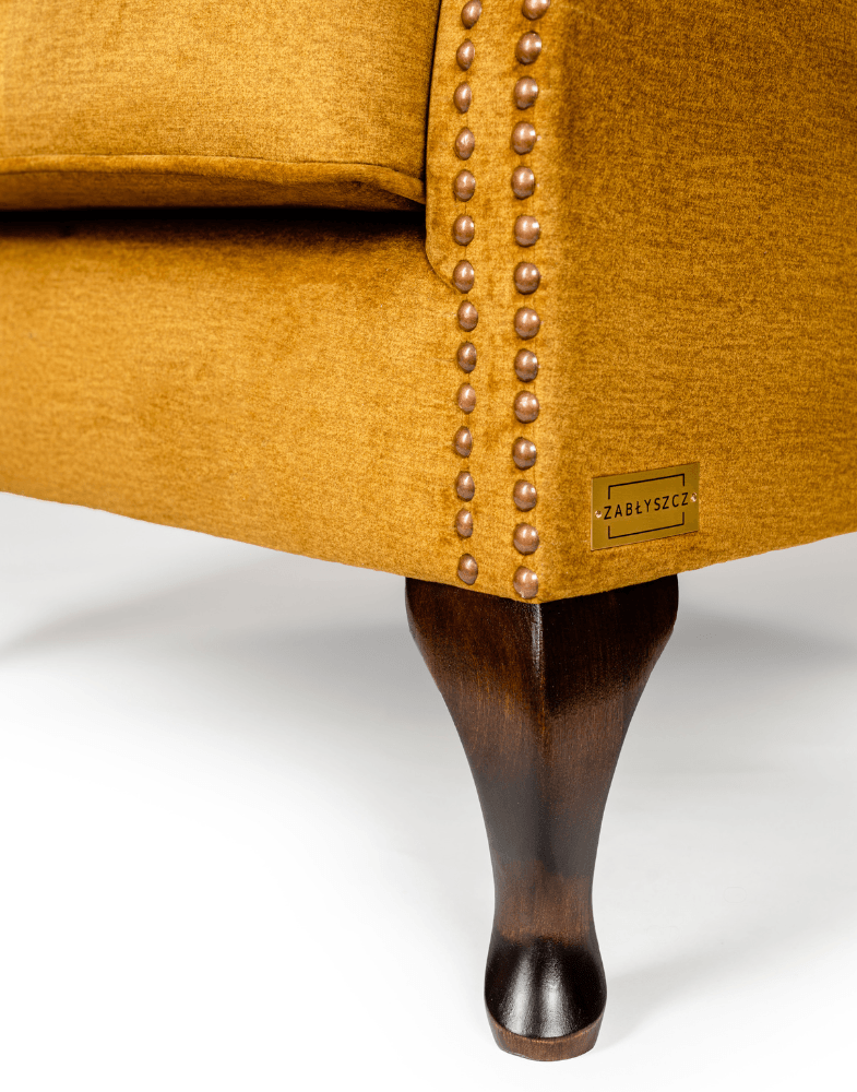 ✅ Najwyższa jakość wykonania – stabilna konstrukcja oparta na solidnym drewnianym stelażu zapewnia wytrzymałość i długowieczność mebla. Precyzyjne pikowania i dekoracyjne ćwieki nadają fotelowi unikalnego charakteru.