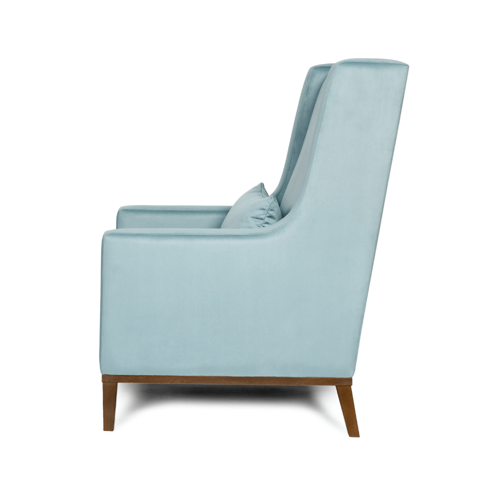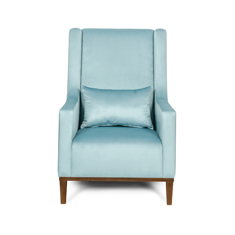 Już na pierwszy rzut oka fotel ARCTURUS przyciąga wzrok smukłą sylwetką i wysokim oparciem, które nie tylko nadaje mu majestatycznego charakteru, ale także doskonale wspiera plecy podczas długiego wypoczynku. Miękkie siedzisko uzupełnione dekoracyjną poduszką w kolorze obicia podkreśla jego luksusowy charakter.