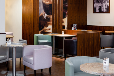 ZABŁYSZCZ Meble z przyjemnością nawiązała współpracę z siecią Lodziarni Grycan i wykonała renowację mebli tapicerowanych: krzeseł, puf, sof oraz loży barowych.