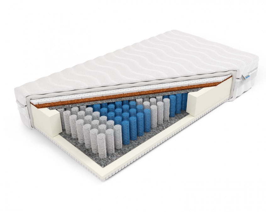 Kokos lateksowany (1 cm po jednej stronie) – usztywnia powierzchnię, zwiększa twardość i wydłuża żywotność materaca. Jednocześnie dba o lepszą wentylację wnętrza i odprowadzanie wilgoci.