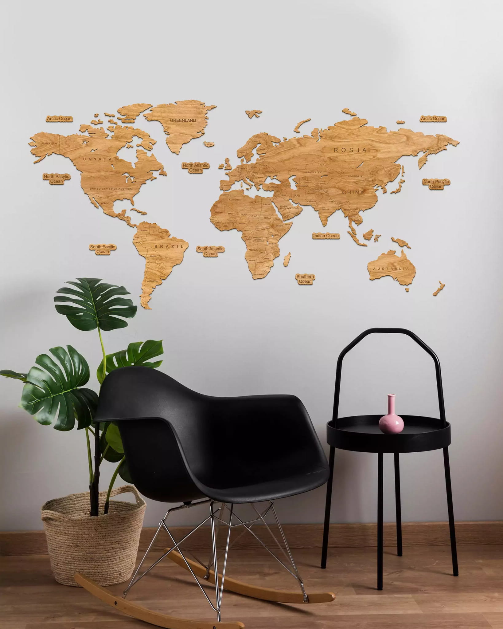Czym byłaby drewniana mapa świata bez nazw oceanów? Te majestatyczne akweny, stanowiące ponad 70% powierzchni Ziemi, zasługują na swoje miejsce również w Twoim wnętrzu. Nazwy oceanów do drewnianej mapy to idealne uzupełnienie każdej mapy ściennej – zarówno w wersji klasycznej, jak i podświetlanej LED. Dzięki nim Twoja dekoracja zyskuje kompletność, edukacyjną wartość i niepowtarzalny charakter podróżniczy.